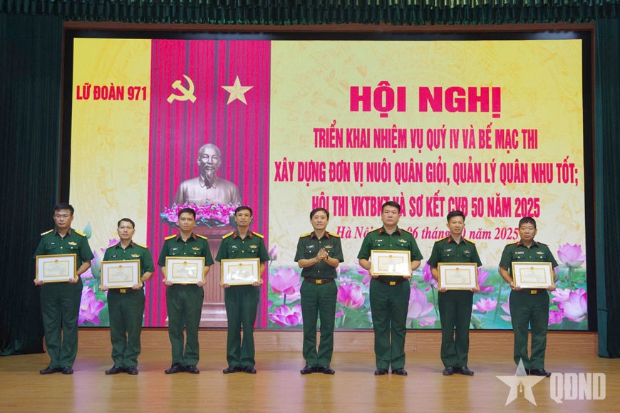 Diễn ra từ ngày 18-8 đến ngày 18-9, với sự tham gia của 8 cơ quan, đơn vị trực thuộc Lữ đoàn 971, đến nay, Hội thi VKTBKT và “Xây dựng đơn vị nuôi quân giỏi, quản lý quân nhu tốt” đã hoàn thành toàn bộ nội dung, chương trình đề ra.