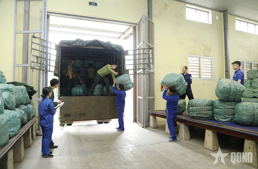 Tại Kho 205, các kíp xe đã tiếp nhận gần 50 tấn hàng vật chất quân nhu theo tiêu chuẩn cho tân binh, sẽ được cấp phát tại đơn vị huấn luyện chiến sĩ mới thuộc Quân khu 1, Quân khu 3 và Quân đoàn 12.