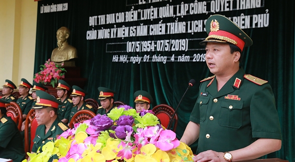 Phát biểu tại buổi lễ, Thiếu tướng Phùng Ngọc Sơn nhấn mạnh, để phong trào thi đua đi vào thực chất, mang lại hiệu quả thiết thực, cấp ủy, chỉ huy các cấp cần làm tốt công tác tuyên truyền, giáo dục sâu rộng mục đích ý nghĩa của đợt thi đua cao điểm; quán triệt nghiêm túc tinh thần thi đua “Luyện quân, lập công”, phương châm “Đánh chắc, tiến chắc” trong Chiến dịch Điện Biên Phủ, cụ thể hóa trong nhiệm vụ huấn luyện, SSCĐ, học tập, công tác; gắn thực hiện đợt thi đua cao điểm với PTTĐ “Huấn luyện giỏi” và Phong trào Thi đua Quyết thắng năm 2019 bảo đảm cụ thể, thiết thực, hiệu quả; chú trọng nâng cao chất lượng tổng hợp và sức mạnh chiến đấu của đơn vị, thi đua huấn luyện giỏi, sẵn sàng chiến đấu cao; có các biện pháp đồng bộ, tạo sự đột phá trong xây dựng nền nếp chính quy, chấp hành kỷ luật; đặc biệt là trách nhiệm nêu gương của cán bộ, đảng viên, nhất là cán bộ chủ trì các cấp...
