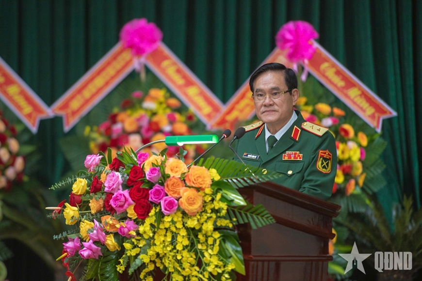 Trung tướng Nguyễn Xuân Dắt, Tư lệnh Quân khu 9 phát biểu chỉ đạo lễ kỷ niệm.