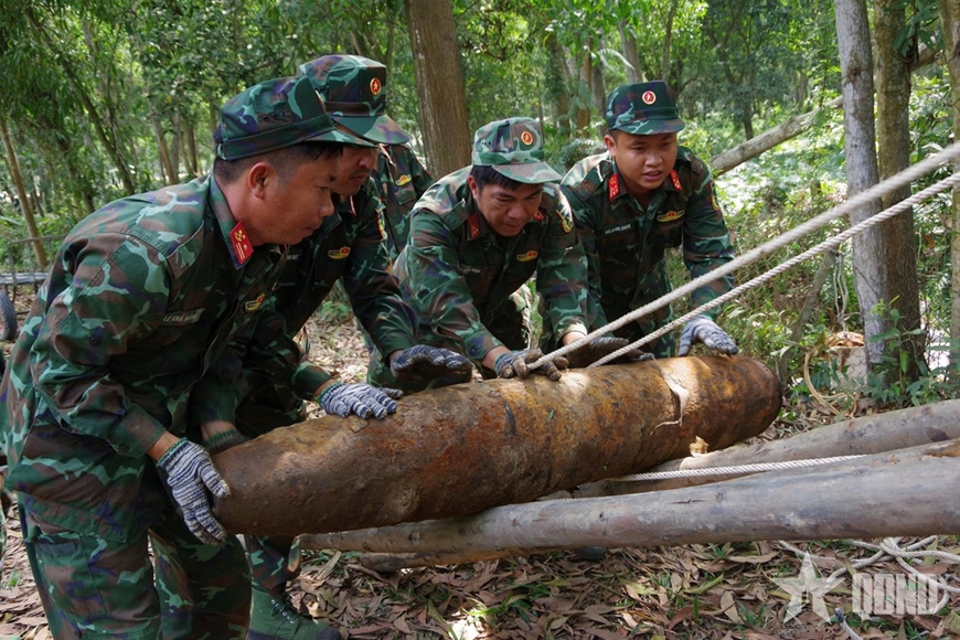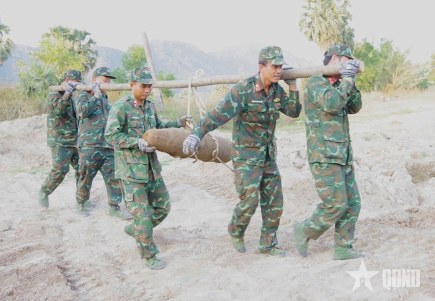 Báo Quân đội nhân dân gửi đến độc giả một số hình ảnh về đợt thu gom, hủy nổ bom, mìn, vật nổ của cán bộ, chiến sĩ Lữ đoàn Công binh 25 (Quân khu 9):