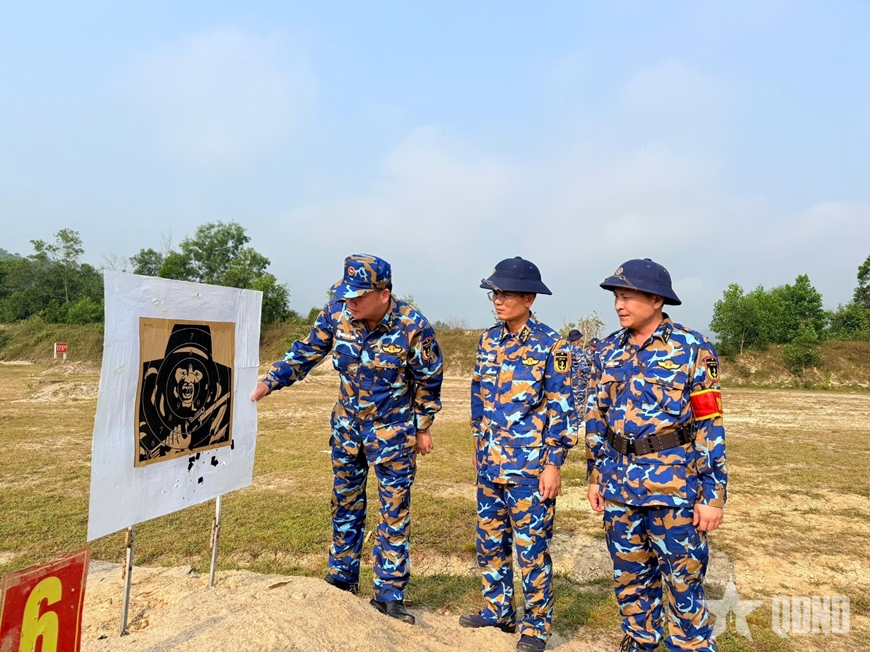 Thượng tá Trương Đức Hiển, Phó lữ đoàn trưởng, Tham mưu trưởng Lữ đoàn Công binh 83 Hải quân kiểm tra kết quả bắn của chiến sĩ mới.
