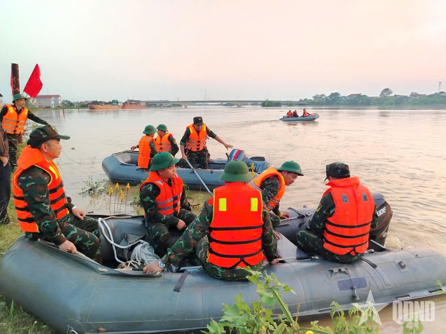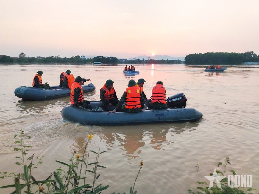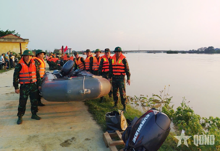 Cán bộ, chiến sĩ Lữ đoàn Đặc công biệt động 1 (Binh chủng Đặc công) triển khai, cơ động cứu trợ nhân dân. |