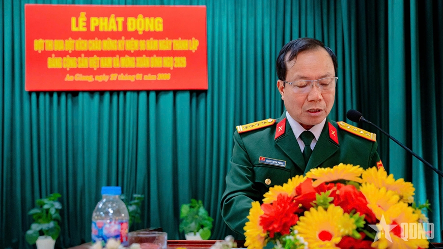 Đại tá Hoàng Tuyển Phong, Bí thư Đảng ủy, Chính ủy, Chủ tịch Hội đồng Thi đua - Khen thưởng Lữ đoàn Pháo binh 6 phát động thi đua.