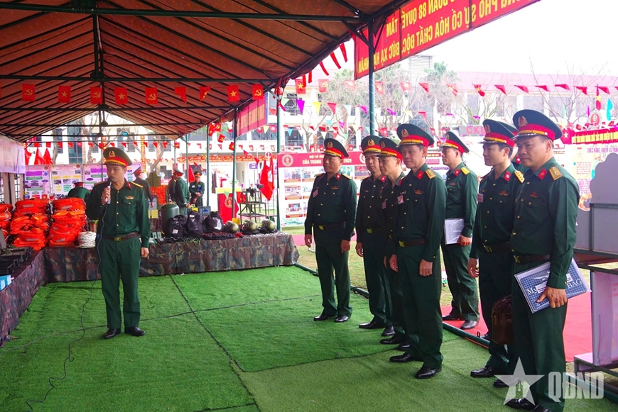 Đoàn công tác Binh chủng Hóa học kiểm tra khu vực trưng bày mô hình, sáng kiến của Lữ đoàn Phòng hóa 88.