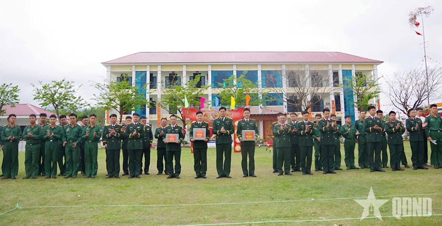 Trung tá Lại Anh Tú, Phó chính ủy Lữ đoàn Phòng hóa 88 trao thưởng tặng các tập thể có thành tích trong các trò chơi.