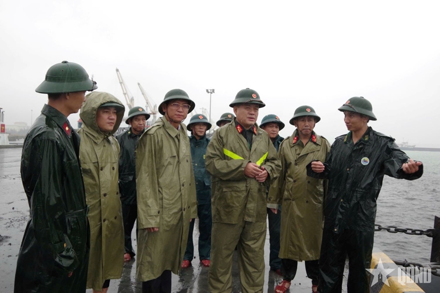 | Bộ CHQS thành phố Huế kiểm tra công tác ứng phó với bão số 13 tại cảng Chân Mây. |