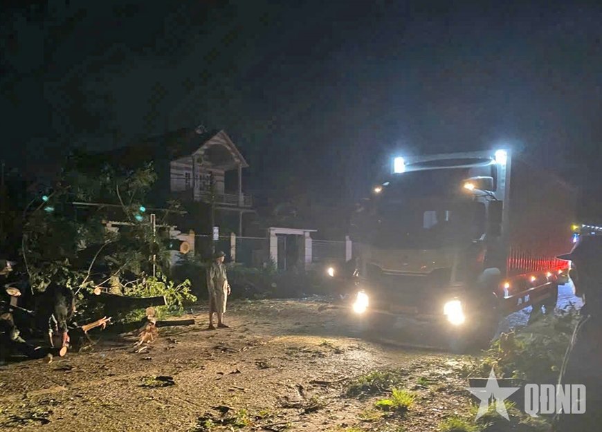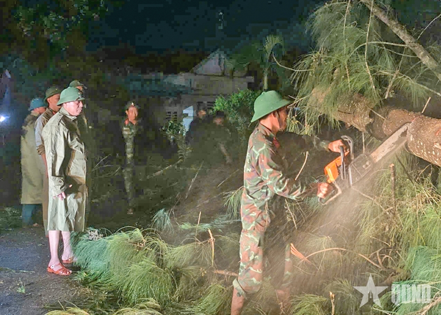 Đội xung kích của Bộ CHQS tỉnh và Ban chỉ huy Phòng thủ khu vực 1 đã nhanh chóng tổ chức khắc phục sự cố, cắt tỉa, dọn dẹp cây ngã đổ, bảo đảm an toàn giao thông.