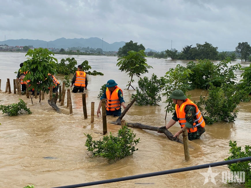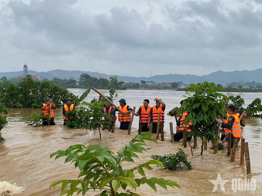 Đại tá Ngô Tuấn Anh, Ủy viên Ban Thường vụ Tỉnh ủy, Chỉ huy trưởng Bộ CHQS tỉnh trực tiếp chỉ huy lực lượng khắc phục sự cố. Các lực lượng đã nhanh chóng đóng hàng trăm cọc tre, kết hợp hàng rào B40, bạt chắn ngăn nước, đồng thời triển khai hơn 500 bao tải cát, đá để đắp đoạn đê vỡ.