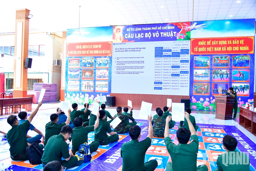 | Cán bộ, chiến sĩ LLVT thành phố hào hứng tham gia hội thi “Rung Chuông vàng”, tìm hiểu kiến thức lịch sử, truyền thống và pháp luật. |