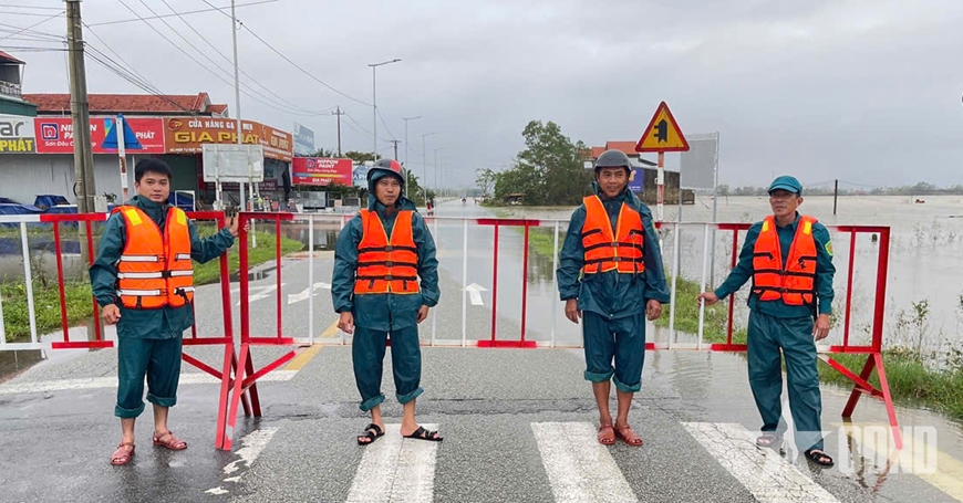 Trước diễn biến phức tạp của mưa lũ, chiều tối 17-11, Đoàn công tác Bộ CHQS thành phố do Thượng tá Hồ Đắc Quốc, Phó chỉ huy trưởng Bộ CHQS thành phố làm trưởng đoàn, đã tiến hành kiểm tra, chỉ đạo công tác ứng phó tại xã Quảng Điền.