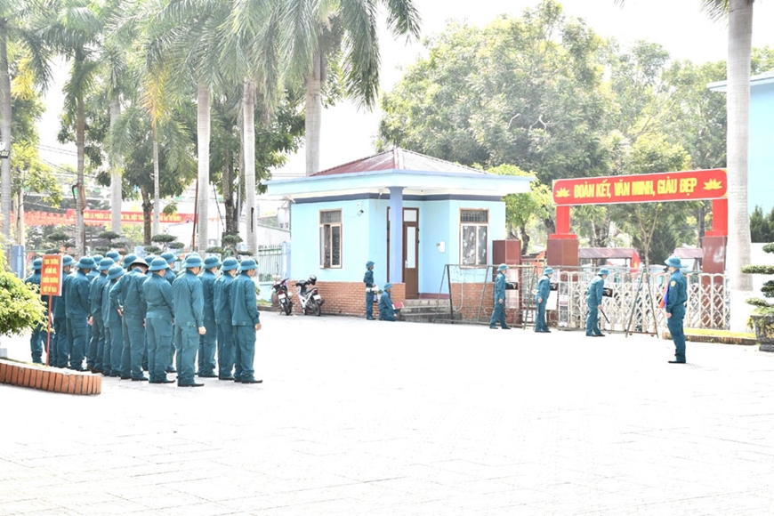 Nội dung huấn luyện gồm: Giáo dục, nâng cao nhận thức chính trị; yếu lĩnh, động tác kỹ thuật, chiến thuật cơ bản, đáp ứng yêu cầu nhiệm vụ huấn luyện, sẵn sàng chiến đấu. Trong đó, tập trung thống nhất nội dung, tổ chức và phương pháp huấn luyện, đồng thời kiểm tra, đánh giá trình độ, năng lực của đội ngũ cán bộ khi đưa sĩ quan Quân đội về công tác tại Ban CHQS cấp xã; vị trí, chức năng, nhiệm vụ của lực lượng dân quân; những vấn đề cơ bản về chủ trương, đường lối, quan điểm của Đảng, chính sách, pháp luật của Nhà nước về quốc phòng, an ninh, đối ngoại, dân tộc, tôn giáo, phòng thủ dân sự, hiểu rõ âm mưu, thủ đoạn “diễn biến hòa bình”, bạo loạn lật đổ của các thế lực thù địch đối với cách mạng Việt Nam trong tình hình mới; huấn luyện sử dụng thành thạo các loại vũ khí, khí tài được trang bị, vũ khí tự tạo; nguyên tắc chiến thuật tổ, tiểu đội, trung đội dân quân tự vệ theo biên chế gắn với địa bàn hoạt động; khả năng độc lập tác chiến, phối hợp chiến đấu, phục vụ chiến đấu và xử trí các tình huống, bảo vệ an ninh chính trị, trật tự an toàn xã hội và các hoạt động khác của địa phương.