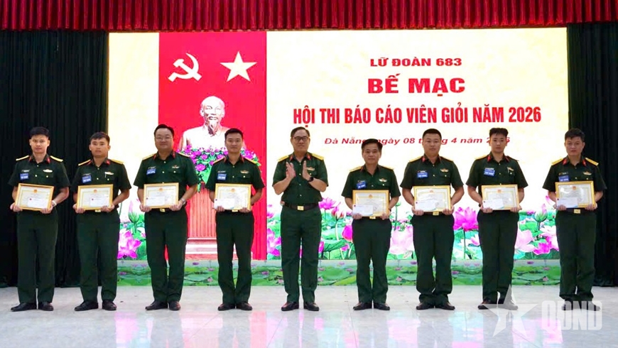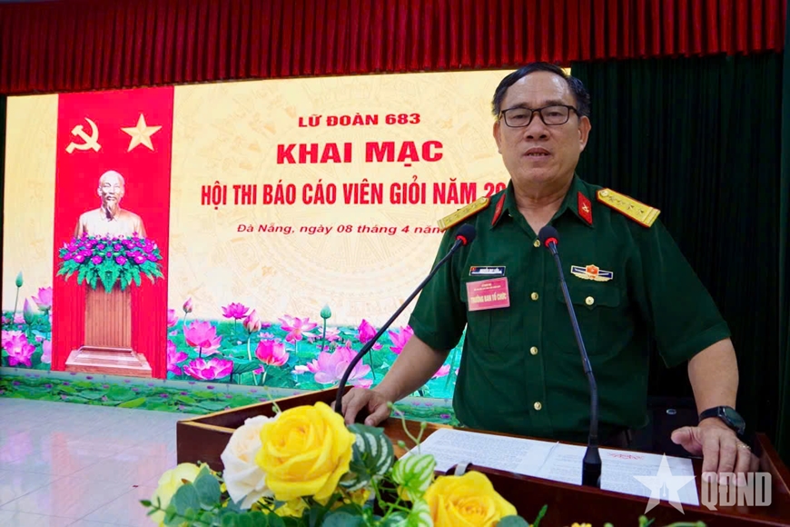 Ngày 8-4, Lữ đoàn 683 (Cục Xe máy - Vận tải, Tổng cục Hậu cần - Kỹ thuật) tổ chức Hội thi báo cáo viên giỏi năm 2026. Đại tá Nguyễn Duy Liền, Bí thư Đảng ủy, Chính ủy Lữ đoàn 683, Trưởng ban Tổ chức hội thi dự và phát biểu.
