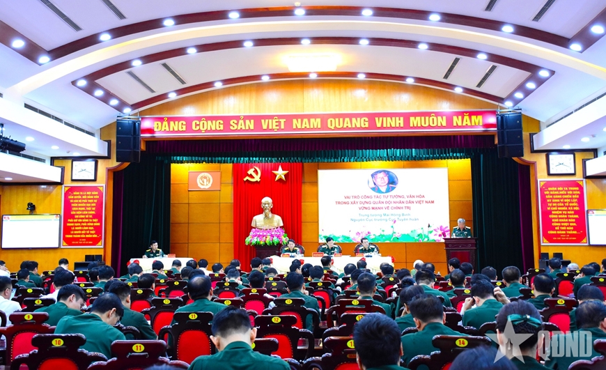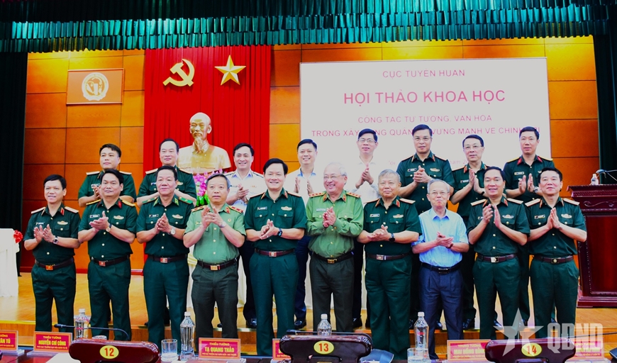 Phát biểu khai mạc hội thảo, Trung tướng Nguyễn Văn Đức, Cục trưởng Cục Tuyên huấn nhấn mạnh: “Để tiếp tục nâng cao chất lượng công tác tư tưởng, văn hóa trong xây dựng Quân đội vững mạnh về chính trị đáp ứng yêu cầu xây dựng và bảo vệ Tổ quốc trong kỷ nguyên phát triển mới của dân tộc, hội thảo tập trung làm rõ và tiếp tục khẳng định: Vị trí, vai trò của công tác tư tưởng, văn hóa trong xây dựng Quân đội vững mạnh về chính trị hiện nay. Đánh giá thực trạng công tác tư tưởng, văn hóa trong Quân đội và những vấn đề đặt ra cần giải quyết, từ đó đề xuất những giải pháp nâng cao chất lượng, hiệu quả công tác tư tưởng, văn hóa đáp ứng yêu cầu xây dựng và bảo vệ Tổ quốc Việt Nam xã hội chủ nghĩa. Yêu cầu, nhiệm vụ của ngành Tuyên huấn Quân đội, của Cục Tuyên huấn và các phòng, ban chức năng trên các lĩnh vực; vai trò của cấp ủy, chính ủy, chính trị viên, cơ quan chính trị trong lãnh đạo, chỉ đạo và triển khai thực hiện công tác tuyên huấn”.