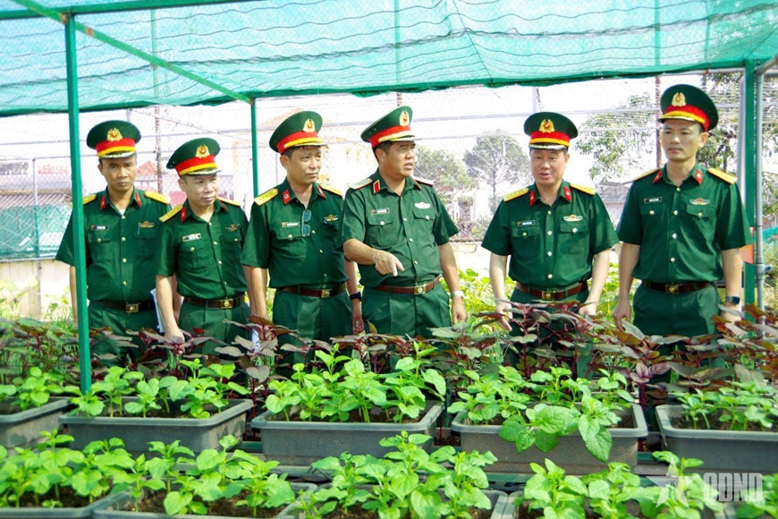 | Đoàn công tác kiểm tra mô hình tăng gia của Trường Cao đẳng Hậu cần 2. |