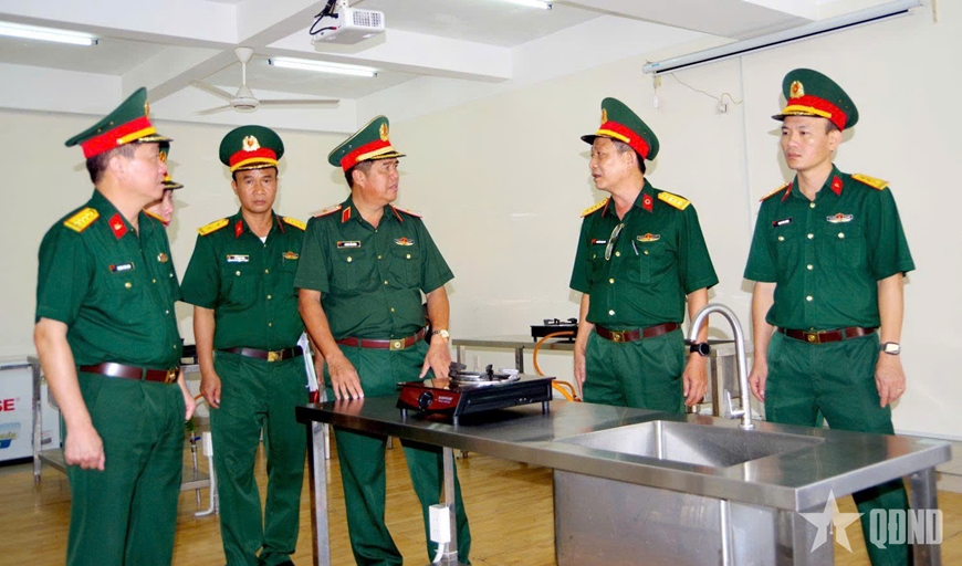 | Đoàn công tác kiểm tra phòng thực hành của Trường Cao đẳng Hậu cần 2. |