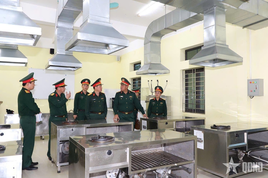 Đoàn công tác kiểm tra khu thực hành nấu ăn của Trường Cao đẳng Hậu cần 1.