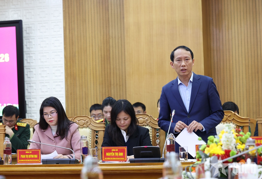 | Đại diện Ban Tuyên giáo và Dân vận Trung ương phát biểu tại buổi gặp mặt. |