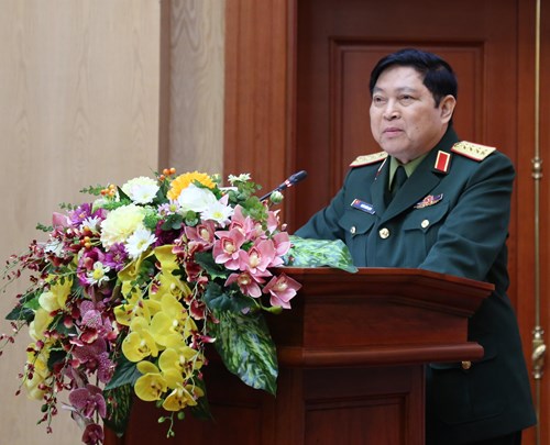 Đại tướng Ngô Xuân Lịch phát biểu tại hội nghị. Ảnh: NGUYỄN BẰNG