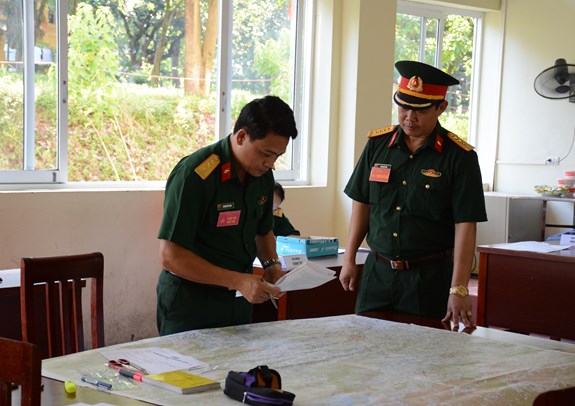 Các thí sinh thực hành nội dung thi soạn thảo văn kiện tác chiến. |