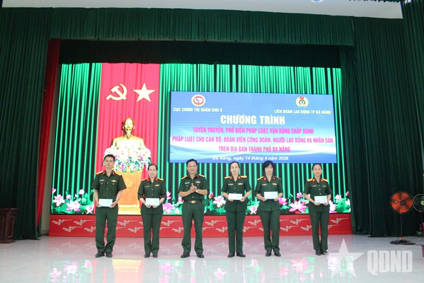 Diễn ra từ ngày 13 đến 16-4 tại Đà Nẵng, Cục Chính trị Quân khu 5 phối hợp với Liên đoàn Lao động TP Đà Nẵng triển khai chuỗi hoạt động tuyên truyền, phổ biến pháp luật và vận động chấp hành pháp luật cho cán bộ, đoàn viên công đoàn, người lao động và nhân dân trên địa bàn.