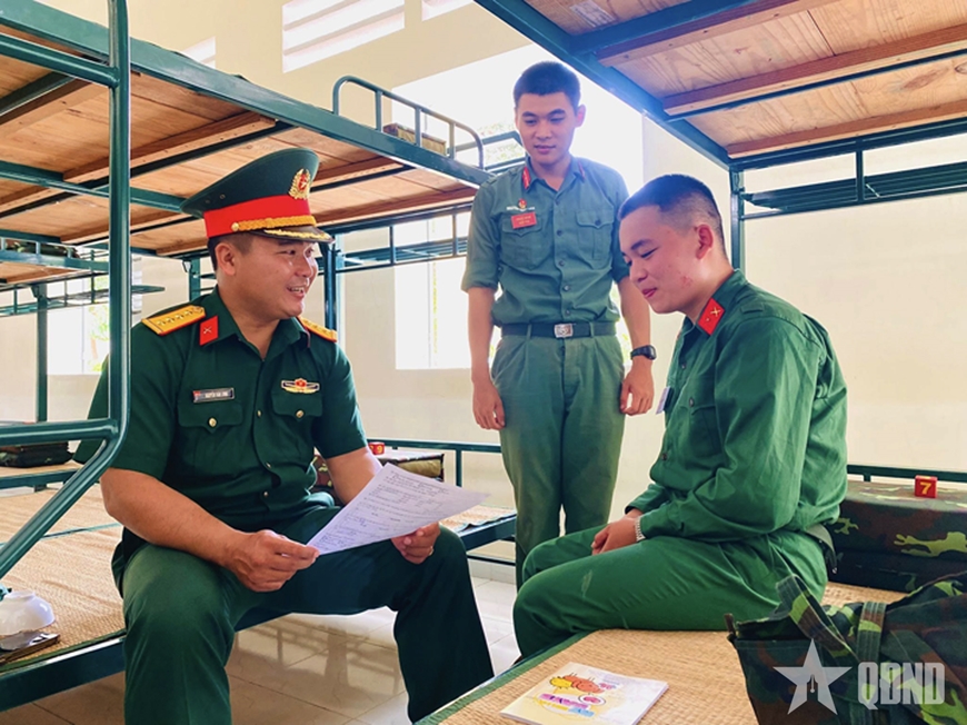 | Cán bộ chủ động gặp gỡ nắm tâm tư và động viên chiến sĩ mới. |