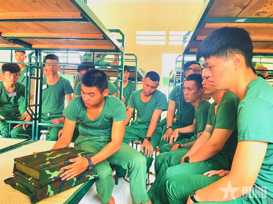 Theo đó, cán bộ các cấp gần gũi động viên, phổ biến những quy định cơ bản chế độ trong ngày và hướng dẫn gấp nội vụ, trò chuyện thăm hỏi chiến sĩ.... Giúp chiến sĩ vượt qua những khó khăn, bỡ ngỡ ban đầu, nhanh chóng hòa nhập với môi trường quân ngũ.