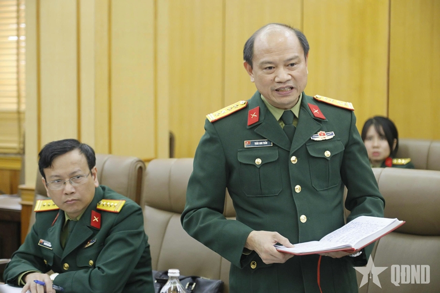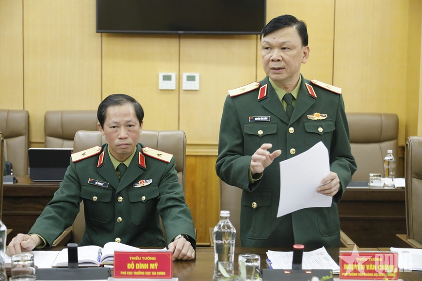 | Thiếu tướng Nguyễn Văn Chính, Phó chánh Văn phòng Bộ Quốc phòng phát biểu tại hội nghị. |