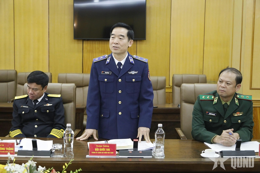| Trung tướng Bùi Quốc Oai, Chính ủy Cảnh sát biển Việt Nam, Thành viên Ban chỉ đạo Quỹ phát biểu tại hội nghị. |