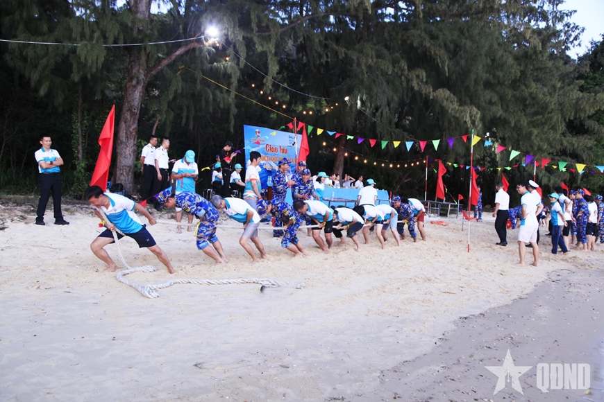 Trong khuôn khổ chuyến thăm, cán bộ, chiến sĩ đơn vị và các cán bộ, công nhân viên nhà máy trong đoàn công tác đã tham gia chương trình giao lưu “Vượt sóng ra khơi, vươn tầm cao mới” với các hoạt động vui chơi tập thể như đua thuyền trên cạn, đưa nước về nguồn, sức mạnh đồng đội, kéo co thuận - nghịch và thi đấu giao hữu pickleball đôi nam, đôi nam nữ.