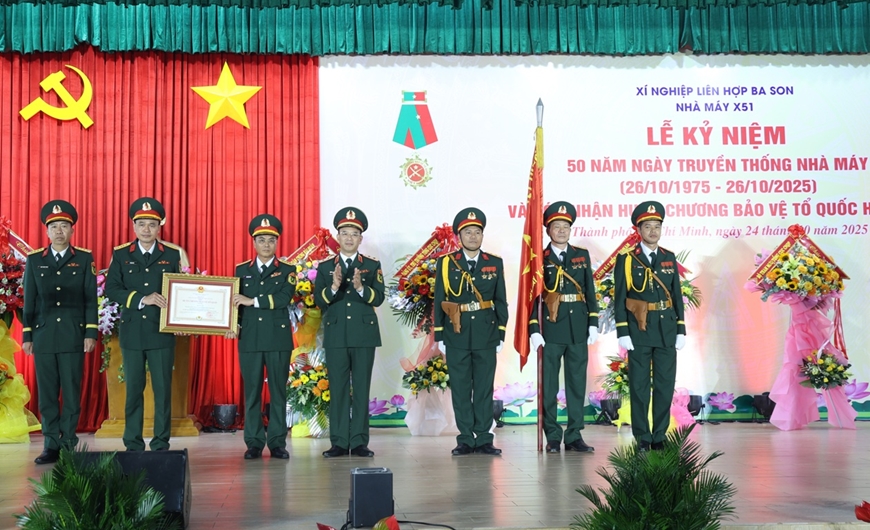 Tại buổi lễ, thừa ủy quyền của Chủ tịch nước, Trung tướng Đinh Quốc Hùng trao Huân chương Bảo vệ Tổ quốc hạng Ba tặng Nhà máy X51.