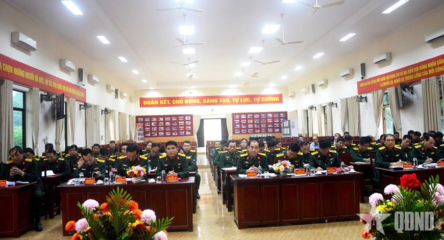 | Đại tá Nguyễn Văn Tuấn và các đại biểu dự hội nghị. |