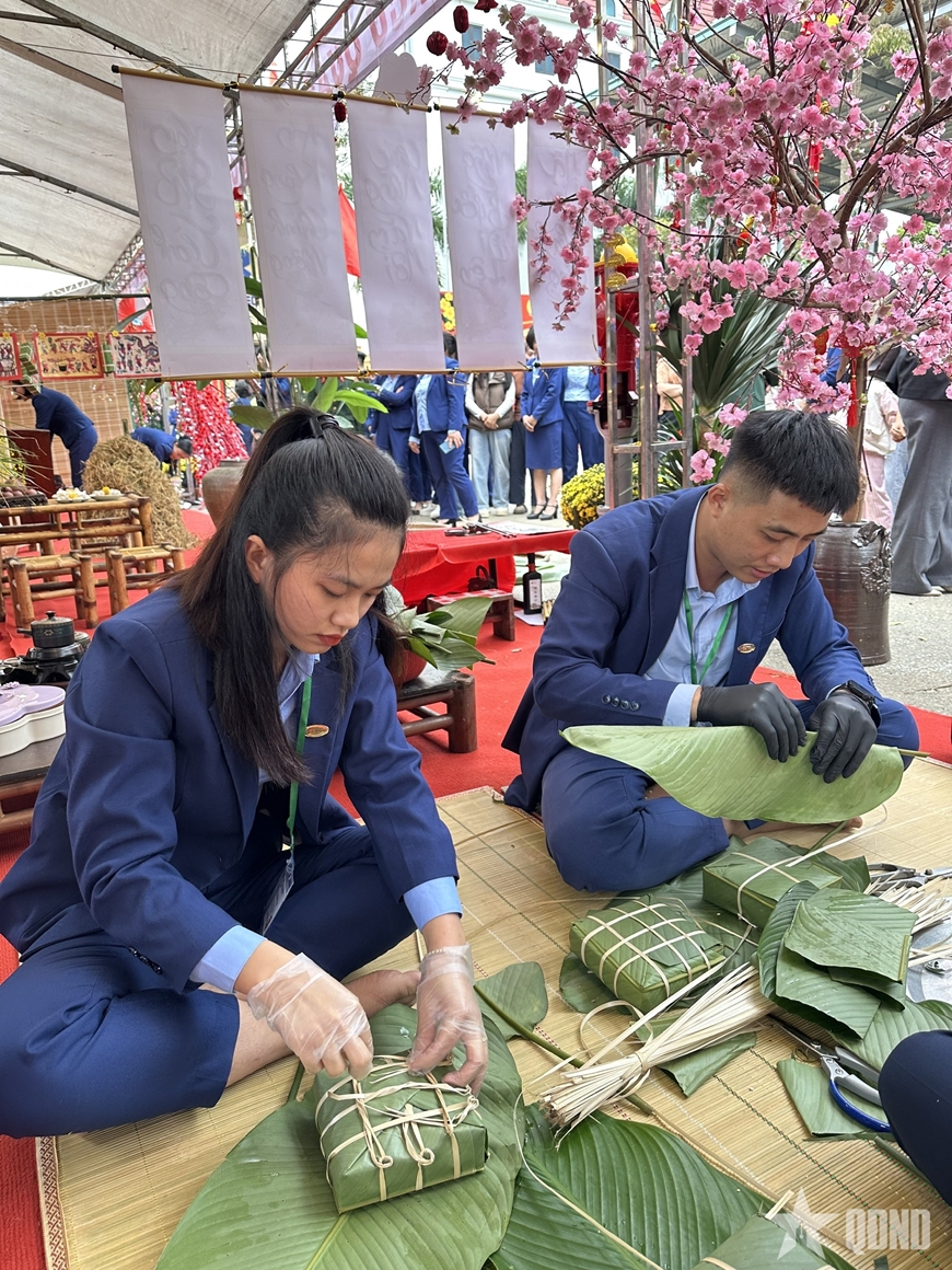 | Các đội thi gói bánh chưng xanh. |