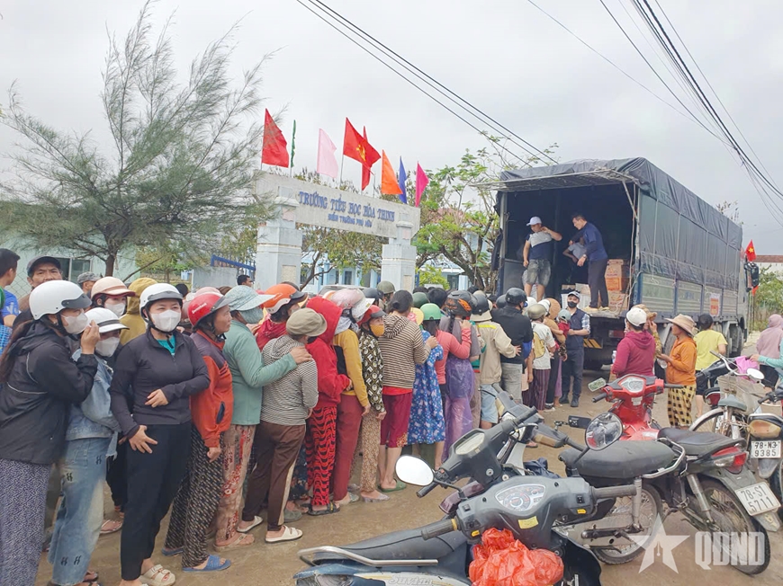 Từng đoàn xe cứu trợ hối hả nối đuôi nhau vào Hòa Thịnh. Tại khu vực trung tâm của các thôn, người dân xếp hàng nhận hàng cứu trợ của các tổ chức thiện nguyện. Chúng tôi gặp gỡ và trao đổi với người dân các thôn, nhất là những thôn bị ảnh hưởng nặng nề, như: Phú Hữu, Mỹ Xuân 1, Mỹ Xuân 2, Mỹ Điền, Cảnh Tịnh, Phú Diễn... Người dân đều có chung cảm nhận là chưa bao giờ thấy trận lũ kinh hoàng như thế này. Trong gian nguy, người dân được chính quyền, LLVT hết mình giúp đỡ; sự chia sẻ của đồng bào cả nước...