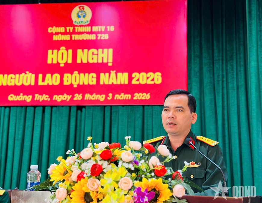 Phát biểu chỉ đạo, Đại tá Trịnh Phạm Hòa biểu dương những kết quả đạt được của Nông trường 726 trong năm 2025, đồng thời yêu cầu đơn vị tiếp tục quán triệt, thực hiện nghiêm các chỉ thị, nghị quyết của Đảng; đẩy mạnh học tập và làm theo tư tưởng, đạo đức, phong cách Hồ Chí Minh; nâng cao hiệu quả sản xuất, kinh doanh; thực hiện tốt công tác an sinh xã hội; đẩy mạnh dân vận; phối hợp chặt chẽ với địa phương trong phát triển kinh tế - xã hội, giảm nghèo bền vững, xây dựng nông thôn mới và triển khai các chính sách đền ơn đáp nghĩa.