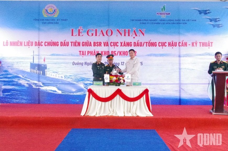 Ngày 25-12, Cục Xăng dầu (Tổng cục Hậu cần-Kỹ thuật) và Công ty Cổ phần Lọc hóa dầu Bình Sơn (Tập đoàn Công nghiệp-Năng lượng quốc gia Việt Nam) tổ chức vận hành, giao nhận và hiệp đồng bảo đảm xăng dầu tại Phân kho 85 (Kho 182, Cục Xăng dầu).