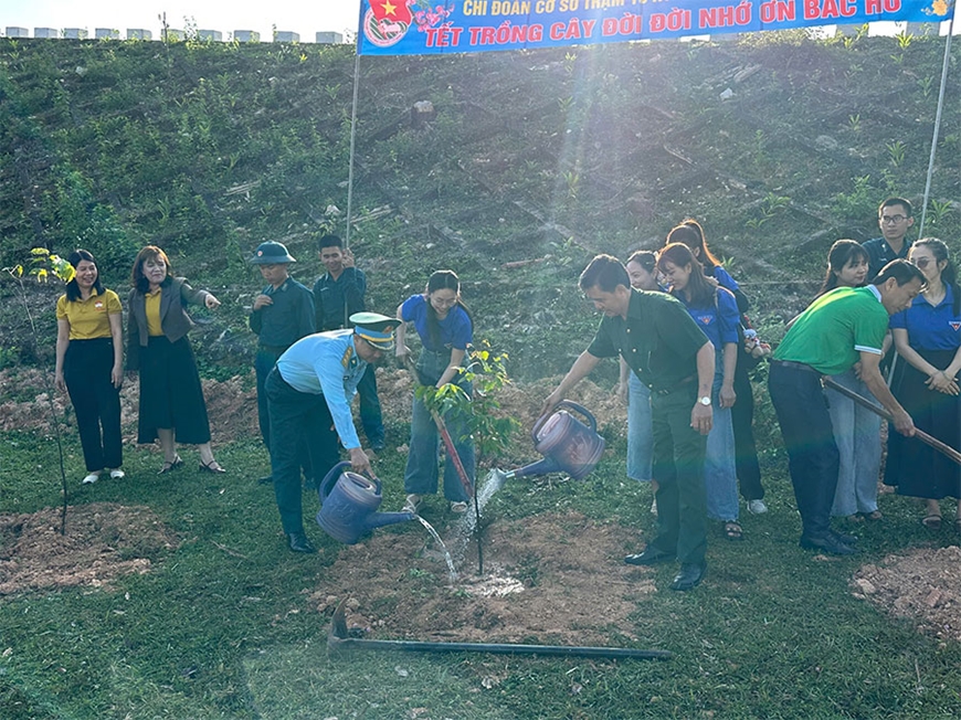 | Lễ phát động "Tết trồng cây đời đời nhớ ơn Bác Hồ" Xuân Bính Ngọ có sự tham gia của các đơn vị kết nghĩa trên địa bàn. |