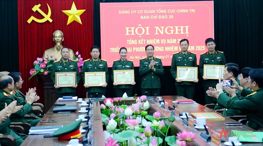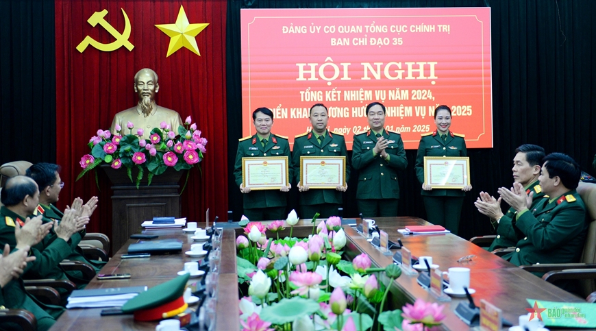 Tại hội nghị, Ban chỉ đạo 35 Đảng ủy Cơ quan TCCT QĐND Việt Nam trao Bằng khen của Chủ nhiệm TCCT QĐND Việt Nam tặng các tập thể, cá nhân đạt thành tích xuất sắc trong tham gia công tác bảo vệ nền tảng tư tưởng của Đảng, đấu tranh phản bác các quan điểm sai trái, thù địch.
