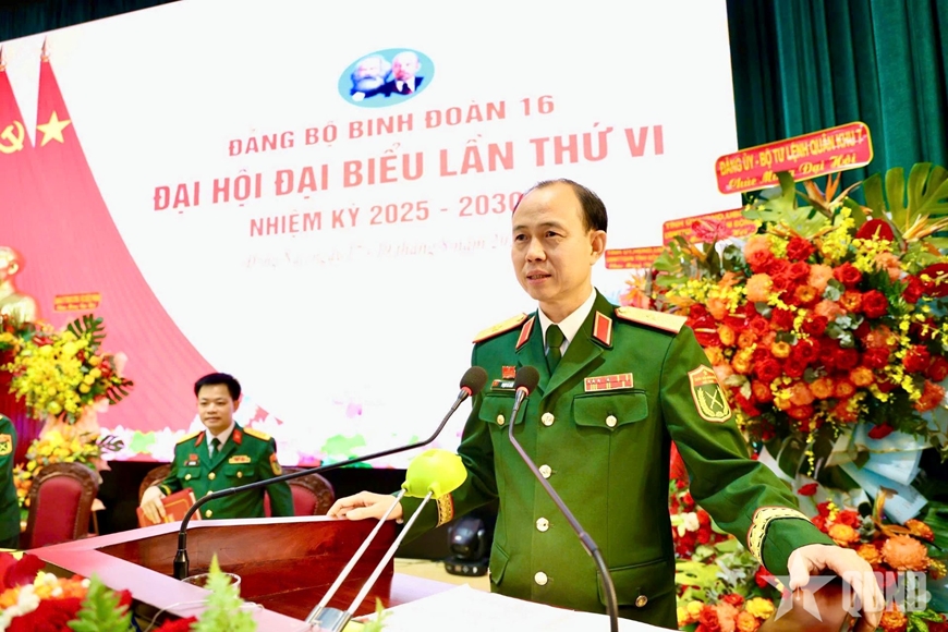 Phát biểu bế mạc đại hội, Đại tá Trịnh Phạm Hòa, Bí thư Đảng ủy, Phó tư lệnh Binh đoàn 16 nhấn mạnh: Đại hội đã đề cao trách nhiệm chính trị, phát huy dân chủ, tập trung trí tuệ, tích cực thảo luận đóng góp nhiều ý kiến, đánh giá khách quan, thực chất kết quả lãnh đạo thực hiện Nghị quyết Đại hội Đảng bộ nhiệm kỳ 2020-2025; quyết nghị phương hướng, mục tiêu, chỉ tiêu, nhiệm vụ và giải pháp lãnh đạo nhiệm kỳ tới; tham gia nhiều ý kiến quan trọng, có chất lượng vào dự thảo các văn kiện của Ban Chấp hành Trung ương trình Đại hội XIV của Đảng; dự thảo Báo cáo chính trị của Quân ủy Trung ương trình Đại hội Đảng bộ Quân đội lần thứ XII.