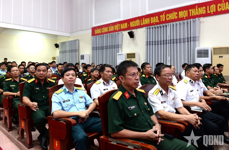 Đoàn chủ tịch hội thảo còn có các đồng chí: Phó đô đốc Nguyễn An Phong, Chính ủy Quân chủng Hải quân; Trung tướng Nguyễn Anh Tuấn, Chính ủy Bộ đội Biên phòng; Đại tá Dương Minh Hải, Cục trưởng Cục Khoa học Quân sự, Bộ Quốc phòng; TS Nguyễn Đức Toàn, Cục trưởng Cục Biển và Hải đảo Việt Nam.