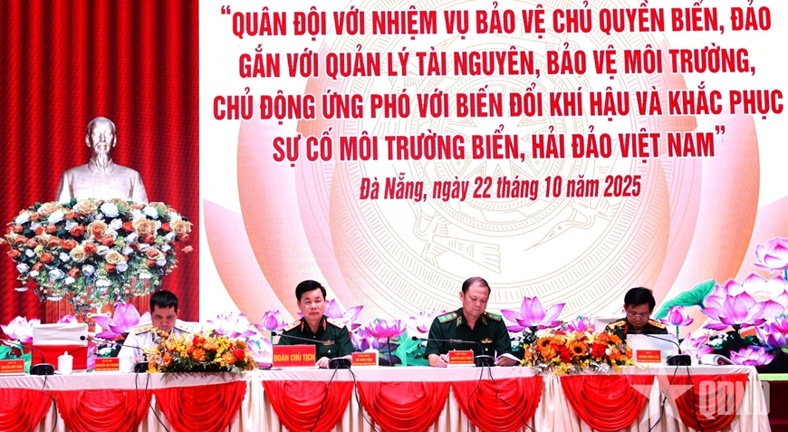 Phát biểu khai mạc hội thảo, Trung tướng Đỗ Xuân Tụng khẳng định: Trong sự nghiệp xây dựng và bảo vệ Tổ quốc, QĐND Việt Nam luôn giữ vai trò nòng cốt, là lực lượng chính trị, lực lượng chiến đấu tuyệt đối trung thành, tin cậy của Đảng, Nhà nước và nhân dân, trực tiếp thực hiện nhiệm vụ bảo vệ vững chắc độc lập, chủ quyền, thống nhất, toàn vẹn lãnh thổ của Tổ quốc, trong đó có chủ quyền biển, đảo thiêng liêng. Trong bất luận điều kiện, hoàn cảnh nào, Quân đội ta không chỉ là lực lượng bảo vệ chủ quyền bằng sức mạnh quốc phòng, mà còn là lực lượng tiên phong trong bảo vệ môi trường, gìn giữ hệ sinh thái, quản lý tài nguyên và ứng phó với biến đổi khí hậu.