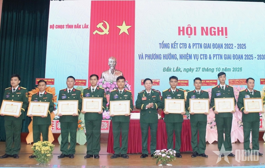 Báo cáo tổng kết CTĐ và PTTN của LLVT tỉnh Đắk Lắk giai đoạn 2022-2025 trình bày tại hội nghị cho thấy, giai đoạn 2022 - 2025, CTĐ và PTTN trong LLVT tỉnh Đắk Lắk luôn được cấp ủy, chỉ huy các cấp quan tâm lãnh đạo, chỉ đạo chặt chẽ. Các phong trào hành động cách mạng được triển khai sâu rộng, gắn với Phong trào Thi đua Quyết thắng, các cuộc vận động lớn của Quân đội; nhiều mô hình, sáng kiến hiệu quả được nhân rộng. Công tác phối hợp với tổ chức đoàn địa phương, đơn vị kết nghĩa đạt nhiều kết quả thiết thực, góp phần xây dựng cơ quan, đơn vị vững mạnh toàn diện “mẫu mực, tiêu biểu”.