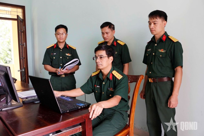 | Đoàn công tác kiểm tra bảo đảm an ninh, an toàn các máy tính tại Đoàn KT-QP 338, Quân khu 1. |