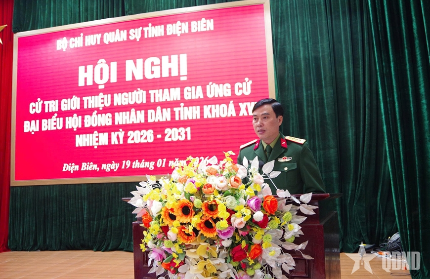 Tại hội nghị, các cử tri nghe tóm tắt tiểu sử, lý lịch của Đại tá Nguyễn Văn Hoạt, Phó chỉ huy trưởng, Tham mưu trưởng Bộ CHQS tỉnh và Thiếu tá Nguyễn Văn Tùng, Trợ lý Dân vận Phòng Chính trị (Bộ CHQS tỉnh), người được giới thiệu tham gia ứng cử đại biểu HĐND tỉnh Điện Biên, nhiệm kỳ 2026 - 2031.