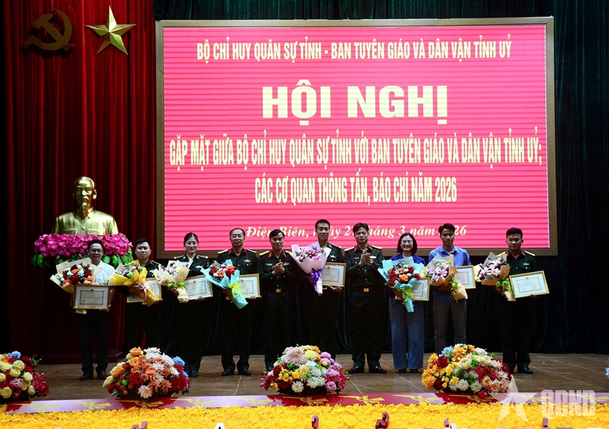 Nhân dịp này, Bộ CHQS tỉnh Điện Biên tặng giấy khen 20 cá nhân đã có thành tích tiêu biểu, xuất sắc trong thực hiện công tác phối hợp tuyên truyền nhiệm vụ quân sự, quốc phòng năm 2025.