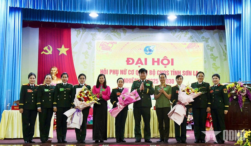 Lãnh đạo Bộ CHQS tỉnh Sơn La và các đơn vị kết nghĩa tặng hoa chúc mừng Ban Chấp hành Hội Phụ nữ cơ quan Bộ CHQS tỉnh nhiệm kỳ 2025-2030. |