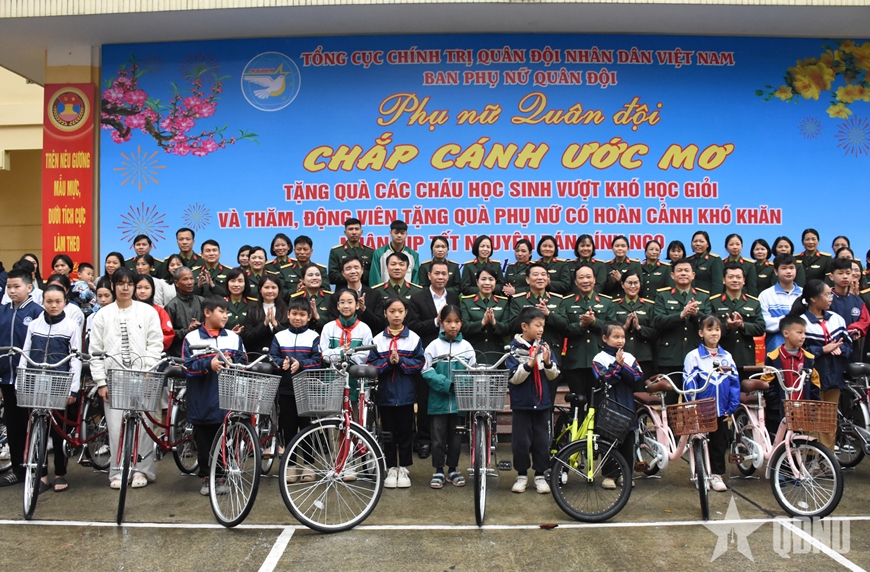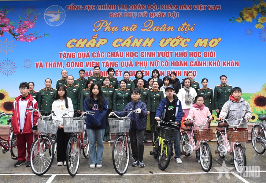 Từ năm 2018 đến nay, Chương trình “Phụ nữ Quân đội chắp cánh ước mơ” được duy trì thường niên vào dịp giáp Tết Nguyên đán, tạo sức lan tỏa sâu rộng và mang đậm ý nghĩa nhân văn. Qua 8 mùa xuân, Ban Phụ nữ Quân đội đã trao tặng gần 1.100 chiếc xe đạp cho học sinh vượt khó học giỏi và gần 9.000 suất quà cho phụ nữ có hoàn cảnh khó khăn, góp phần khơi dậy tinh thần tương thân, tương ái với thông điệp “Tết sẻ chia - Tết yêu thương”.