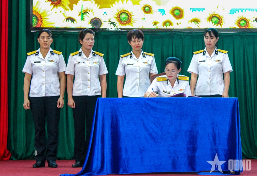 Phong trào thi đua trong Phụ nữ Trung tâm BĐKT giai đoạn 2025 - 2030 được triển khai với chủ đề: “Phụ nữ Trung tâm Bảo đảm kỹ thuật bản lĩnh - trí tuệ, đẩy mạnh chuyển đổi số, hoàn thành tốt nhiệm vụ, xây dựng gia đình hạnh phúc, xứng danh Bộ đội Cụ Hồ - Người chiến sĩ Hải quân trong kỷ nguyên mới”.