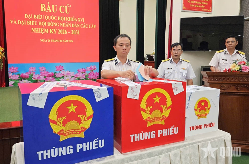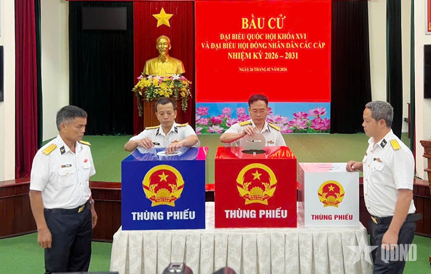 Sáng 26-2, Bộ tư lệnh Vùng 2 Hải quân phối hợp với Ủy ban bầu cử xã Long Sơn (TP Hồ Chí Minh) tổ chức bầu cử Đại biểu Quốc hội khóa XVI và đại biểu HĐND TP Hồ Chí Minh khóa XI, nhiệm kỳ 2026-2031 tại bến và tiễn 2 đoàn thực hiện nhiệm vụ tổ chức bầu cử sớm cho các lực lượng làm nhiệm vụ trên biển và ngư dân đang khai thác thủy hải sản.