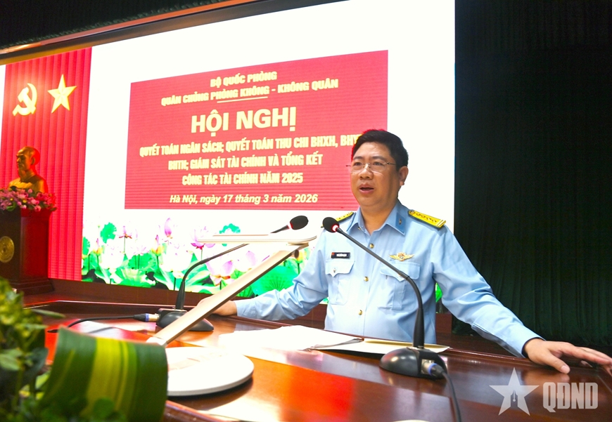 Tại hội nghị, Đại tá Thái Doãn Hạnh, Trưởng phòng Tài chính Quân chủng PK-KQ báo cáo kết quả thực hiện nhiệm vụ quyết toán ngân sách, thu chi bảo hiểm xã hội, bảo hiểm y tế, bảo hiểm thất nghiệp, giám sát tài chính và tổng kết công tác tài chính năm 2025.